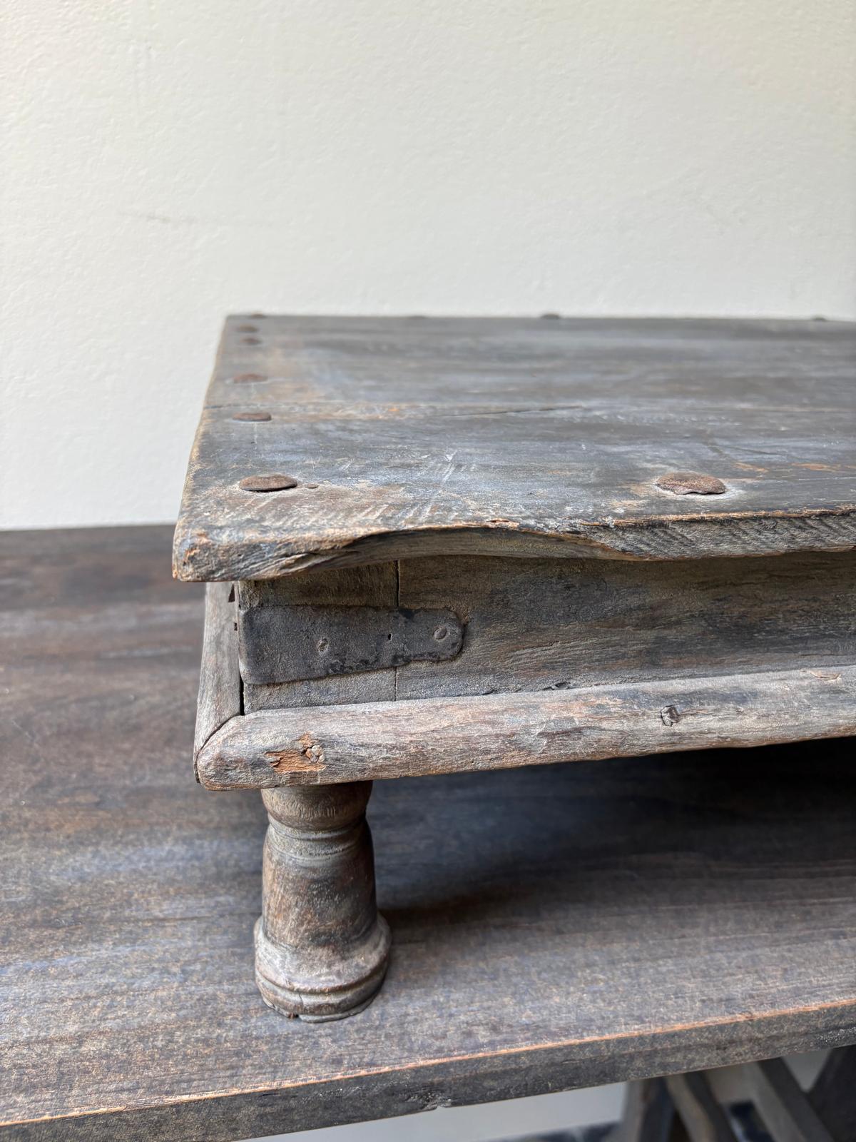 Deze antieke Bajot tafel is gemaakt van hout en heeft een afmeting van 55 x 55 x 17.5 cm.