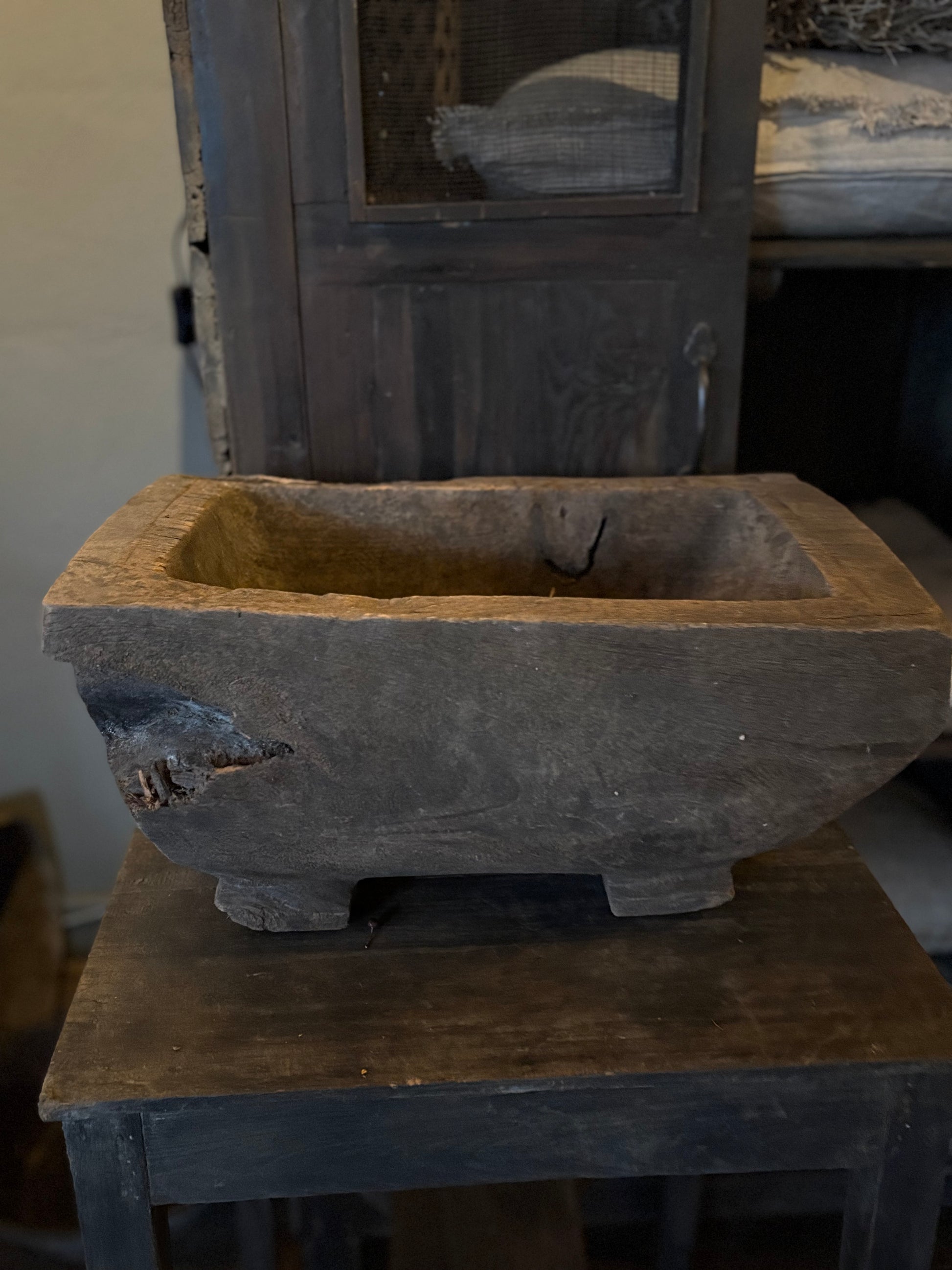 Authentieke houten bak op pootjes.
