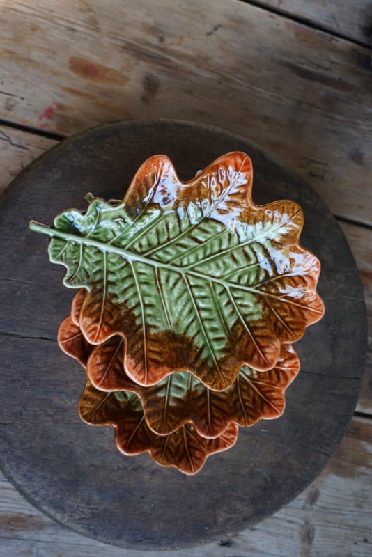 Deze kleine broodbordjes zijn handgemaakt van het merk Bordallo Pinheiro.