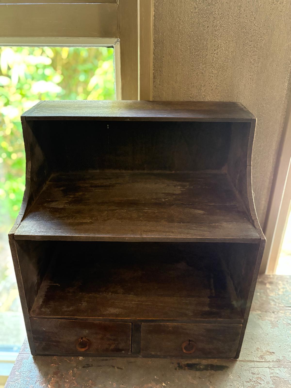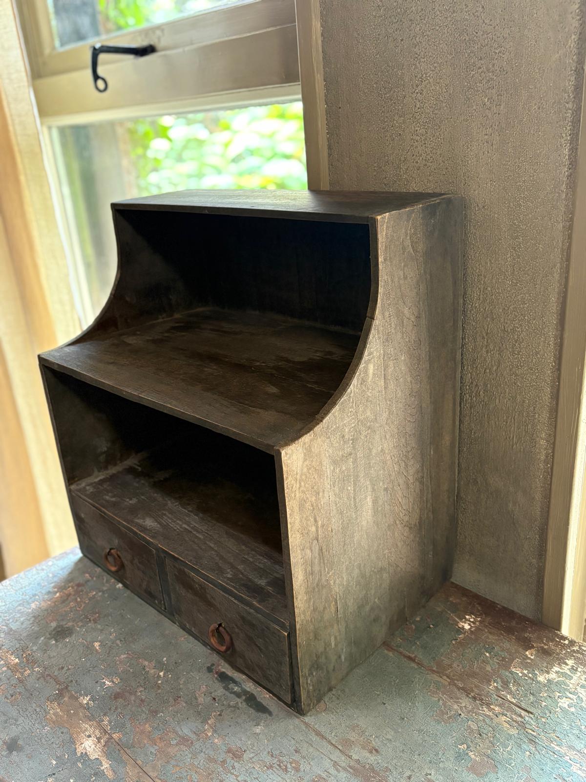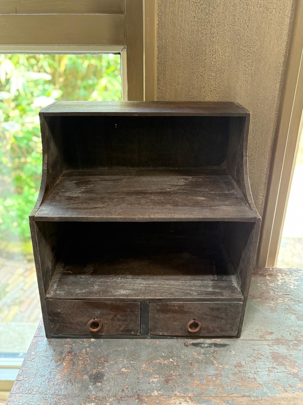 Deze landelijke Gruttersbak is gemaakt van oud hout en bevat 2 lades. De afmeting is 30 x 50 x 46,5 cm.