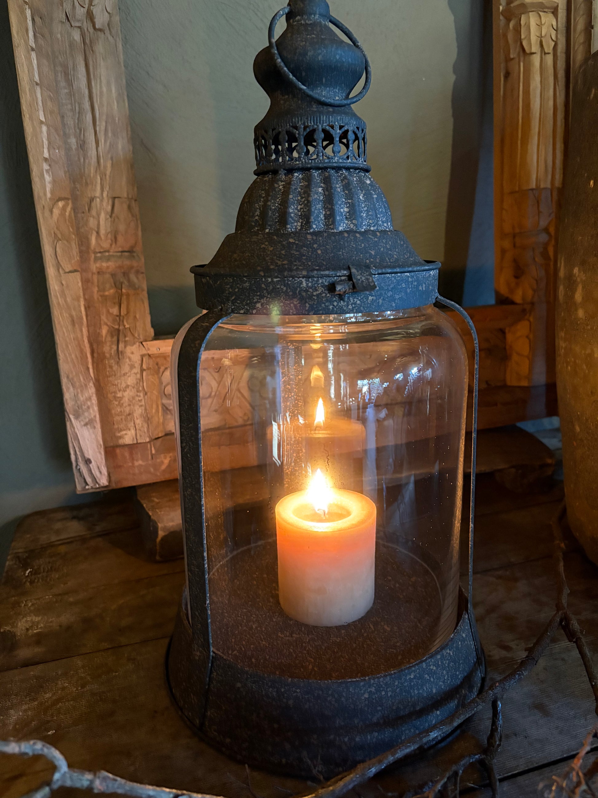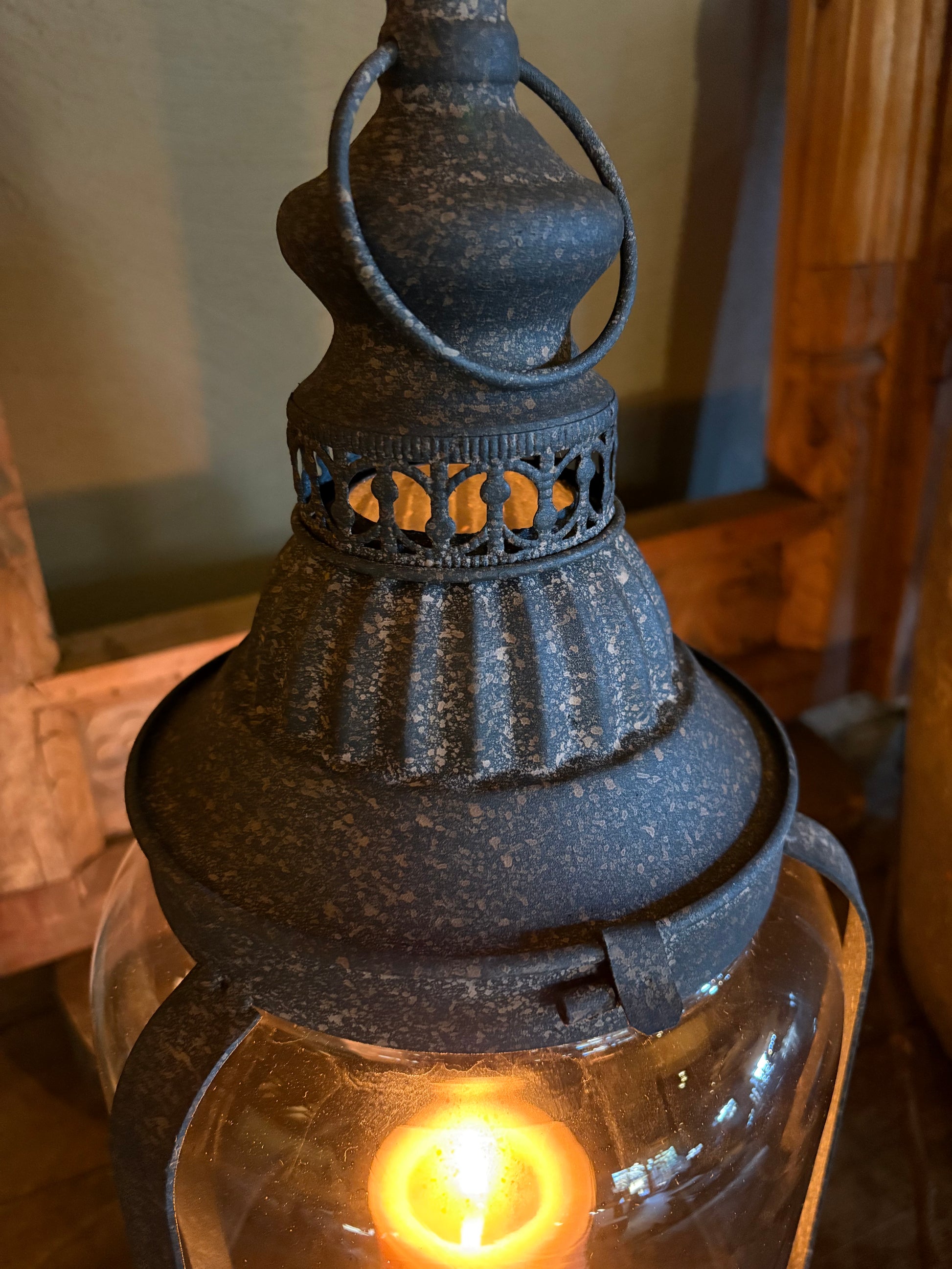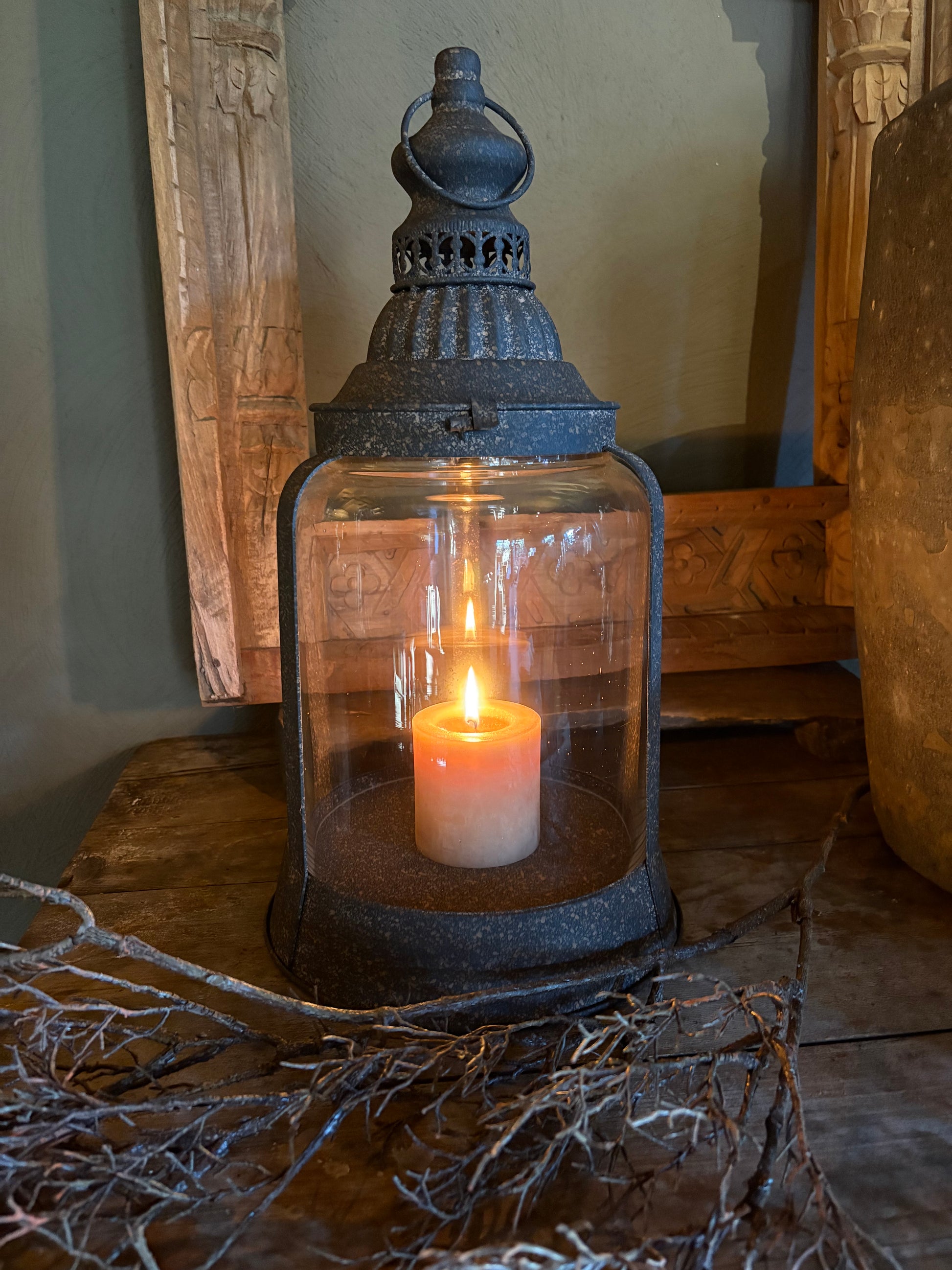 Grote stoere lantaarn in de kleur donker bruin/ roest