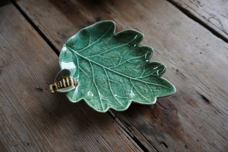 Dit handgemaakt schaaltje van het merk Bordallo Pinheiro heeft een afmeting van 13 x 11.5cm.