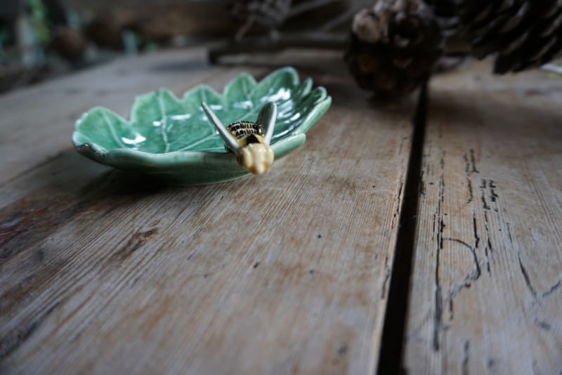 Het aardewerk servies van Bordallo Pinheiro is handgeschilderd, is vaatwasser bestendig en kan in de magnetron.