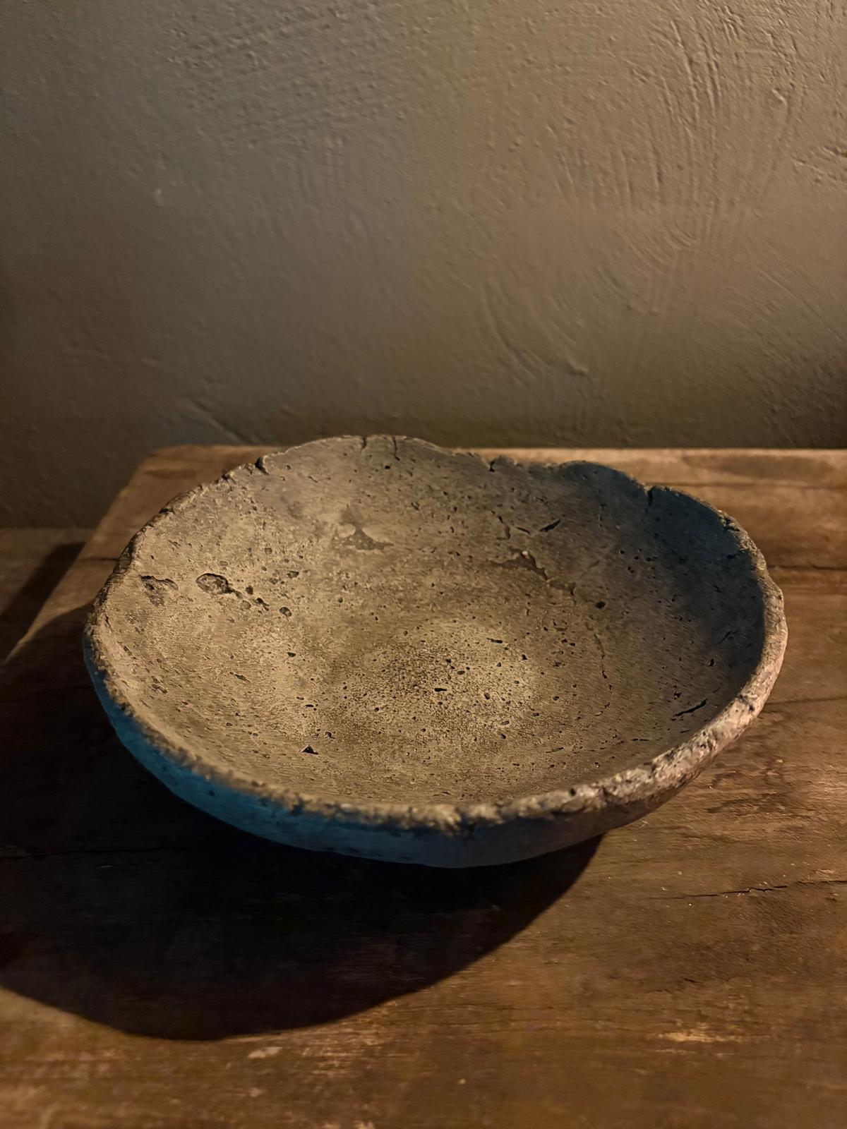 Deze rustieke schaal van het private label Catharina at Home heeft een afmeting van 21 x 6 cm.