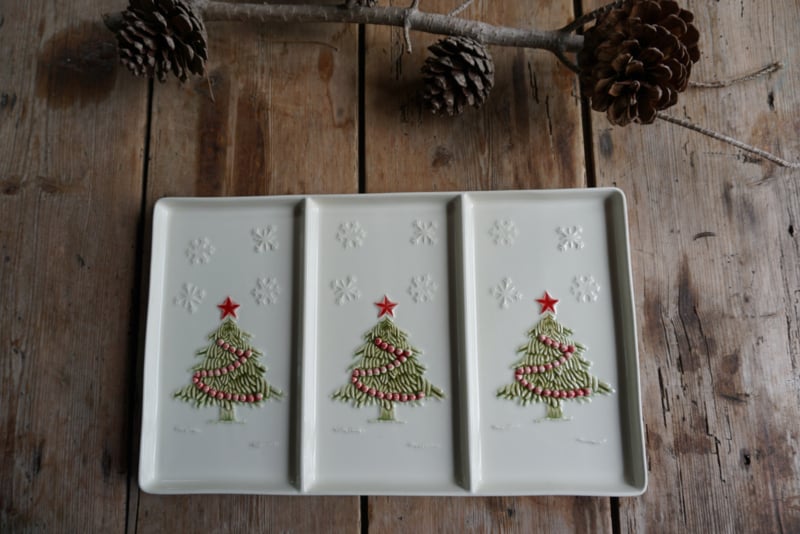 Deze tray van het merk Bordallo Pinheiro heeft een afmeting van 34 x 20 cm.