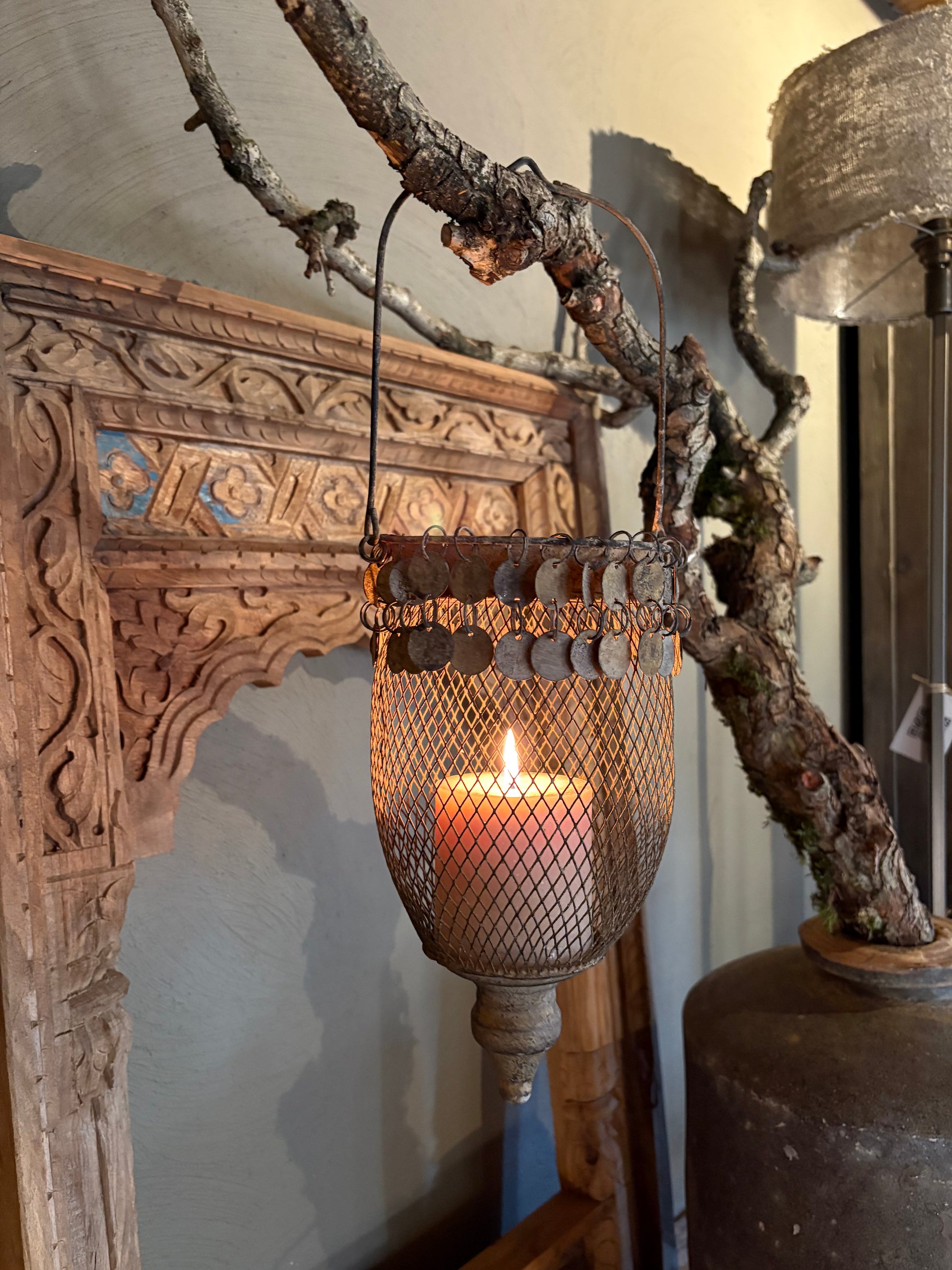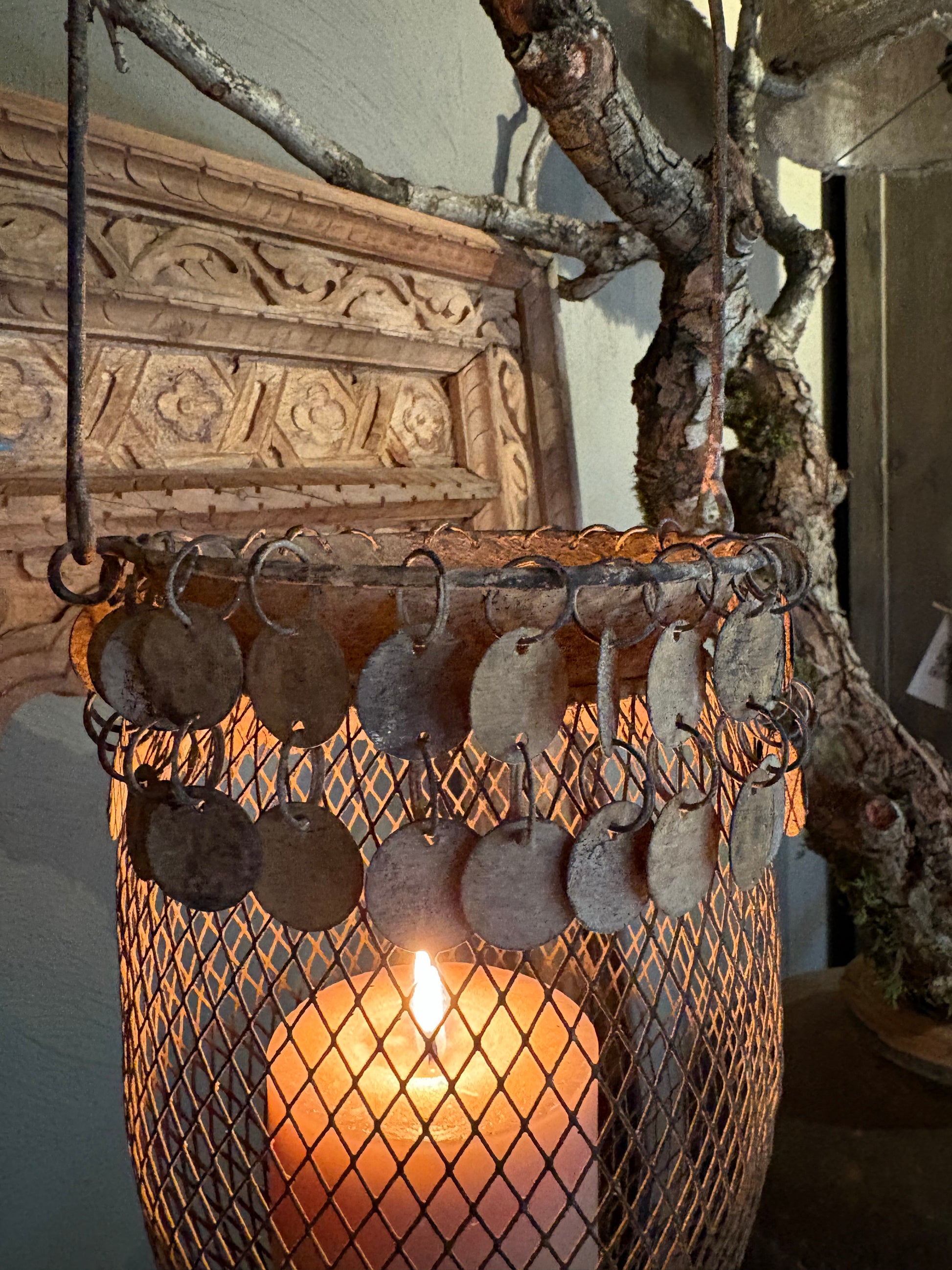 Windlicht in roest met stoere schijfjes.