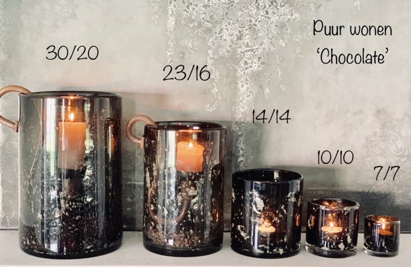 Aangezien onze windlichten met de mond geblazen zijn en manueel gepigmenteerd zijn, zit er kleurverschil tussen de verschillende maten. Dit versterkt de schoonheid van onze collectie.