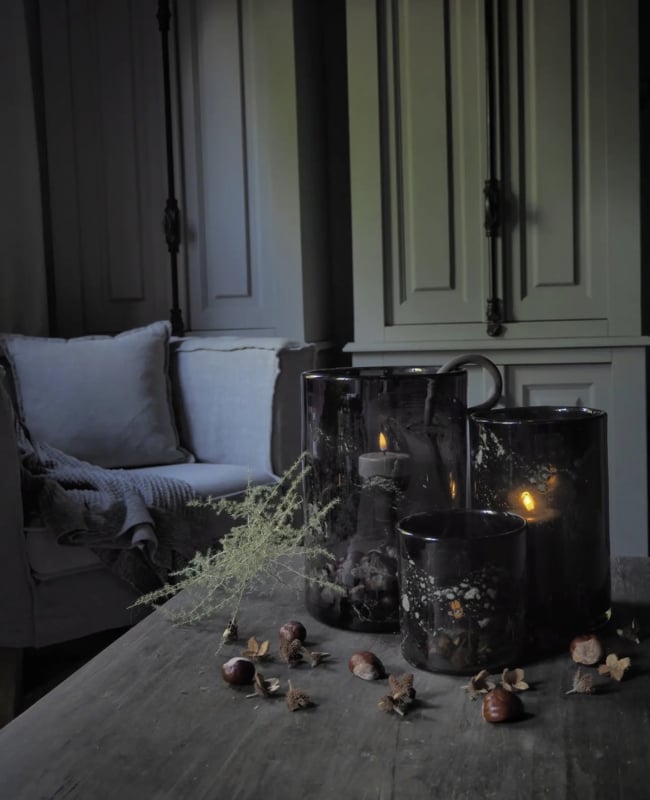 Aangezien onze windlichten met de mond geblazen zijn en manueel gepigmenteerd zijn, zit er kleurverschil tussen de verschillende maten. Dit versterkt de schoonheid van onze collectie.